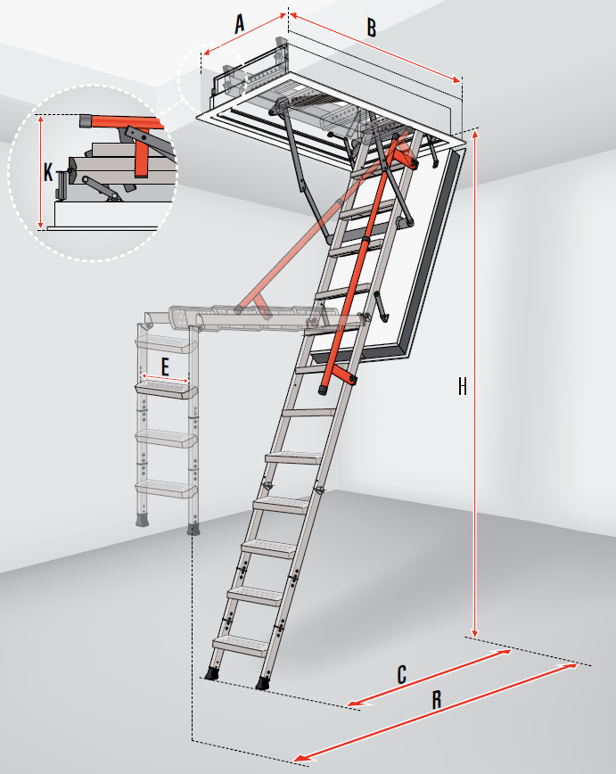 Чердачная 3-х секционная лестница LMF. Чердачная лестница не только отвечает противопожарным нормам, но и обеспечивает возможность удобного и безопасного доступа на чердак. LMF является преградой для распространения огня и дыма во время пожара 120 минут (EI2: 120 минут по норме EN 13501-2).